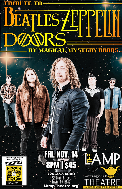 The Beatles, Led Zeppelin, and The Doors. These three iconic groups have changed the face of music as we know it. Their songs have become part of our history. Their melodies have moved people everywhere to “Come Together” in their love of music. Patrons attending a Magical Mystery Doors performance can expect to hear timeless tunes from each of these historic bands over the course of the night. The songs you know, the songs you love, the songs you sing at the top of your lungs!